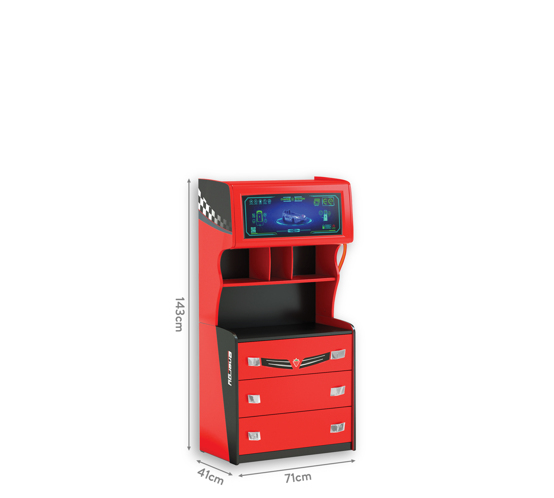 Gerçekçi elektrikli şarj istasyonu görüntüsü ve çevreci tasarımı ile çocukların çok sevdiği Champion Racer Energy Şifonyer, ralli pilotlarını yolda bırakmaz.