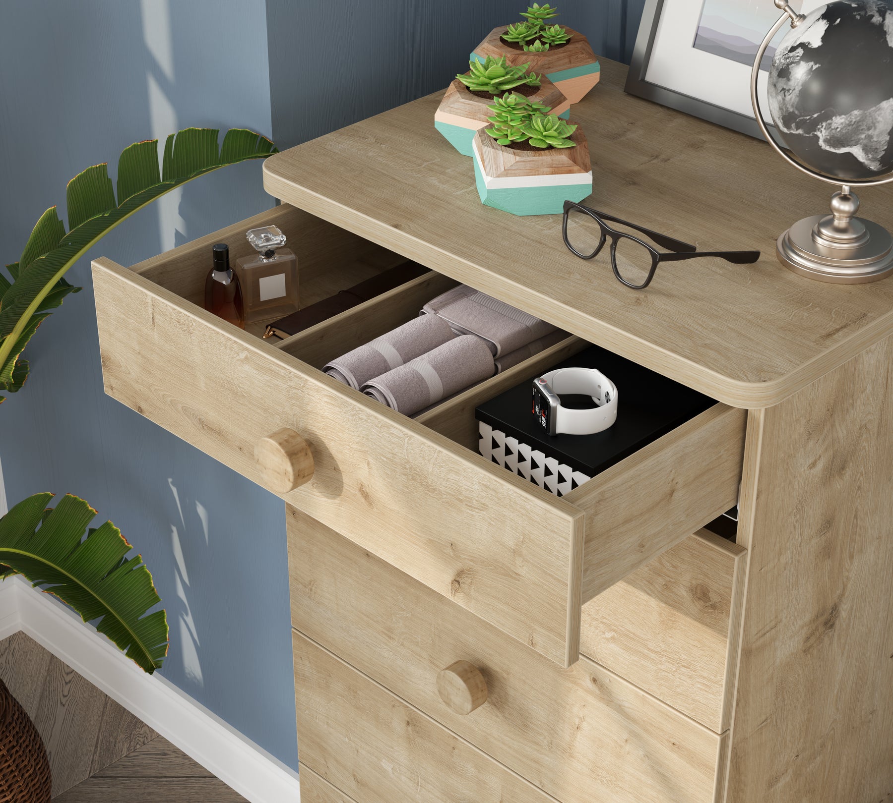 Doğallığı ön planda tutan görünümü ile sade bir şıklığı genç yaşam alanlarına taşıyan Mocha Yüksek Şifonyer, kullanışlı çekmeceleri ile özel bir depolama alanı sağlar. Gençlerin kıyafetleri ve özel eşyaları için bağımsız bir tamamlayıcı özelliği olan Mocha Yüksek Şifonyer, 5 çekmeceden oluşur. En üst çekmece içinde bulunan bölmeler ise eşya yerleştirirken iç hacmi daha verimli kullanmaya yardımcı olur.