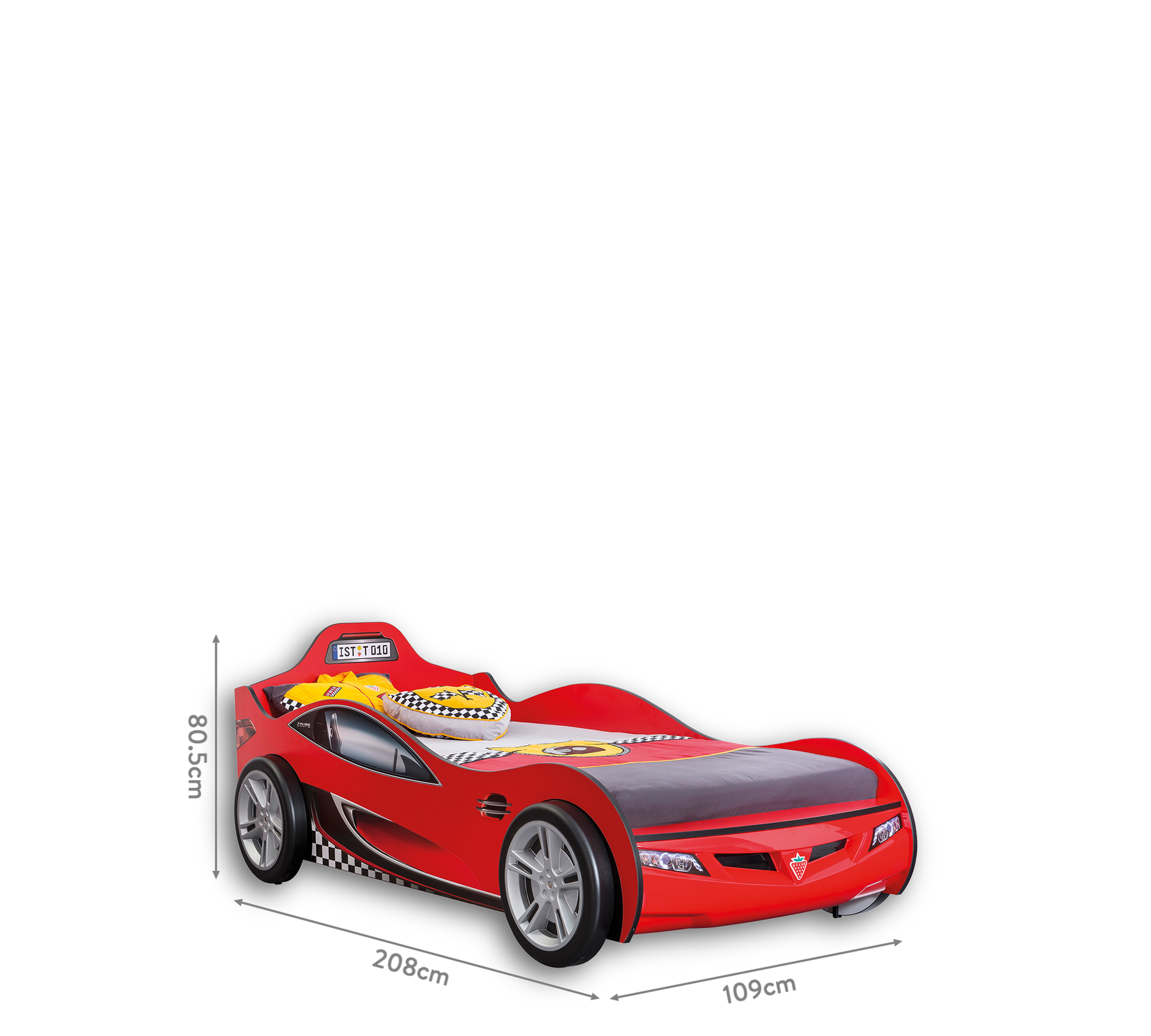 Yarış arabası olarak dizayn edilen Racecup Araba Yatak kırmızı rengi ve spor görünümü ile çocuk odası dekorasyonuna dinamik bir hava katar.