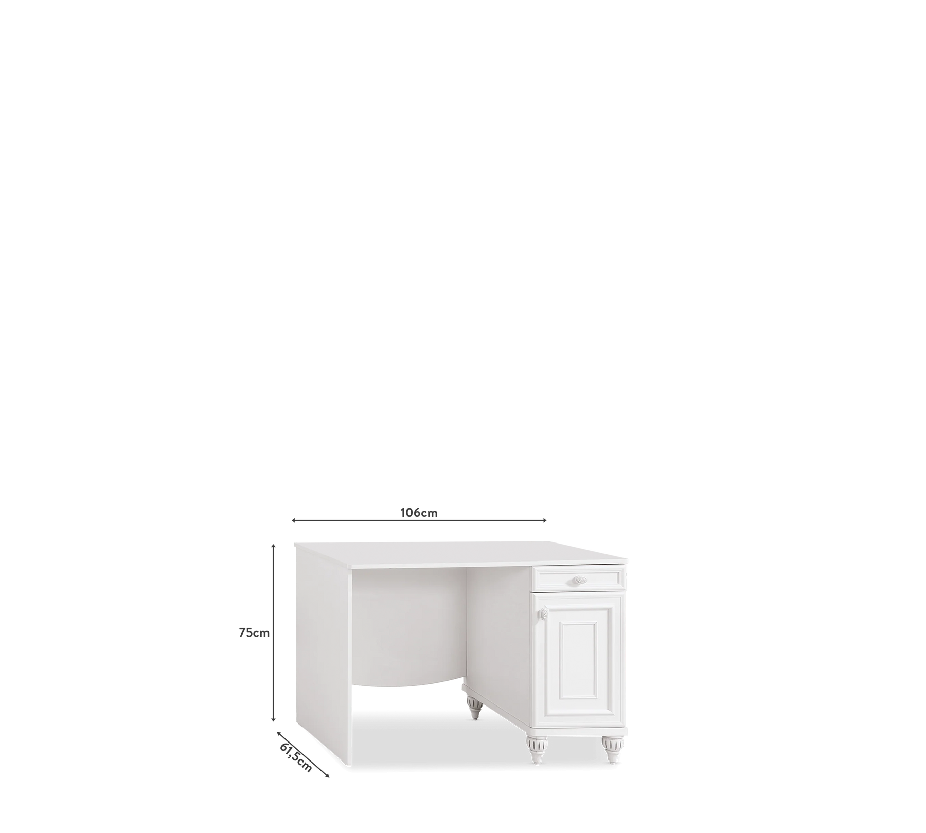 Beyaz, sade ve zarif tasarımı ile Romantica Çalışma Masası, serinin masalsı tarzını destekler. Bir adet çekmecesi ve bir adet kapaklı bölmesi bulunan masa, çocuklarına verimli ve rahat bir çalışma ortamı sunar.