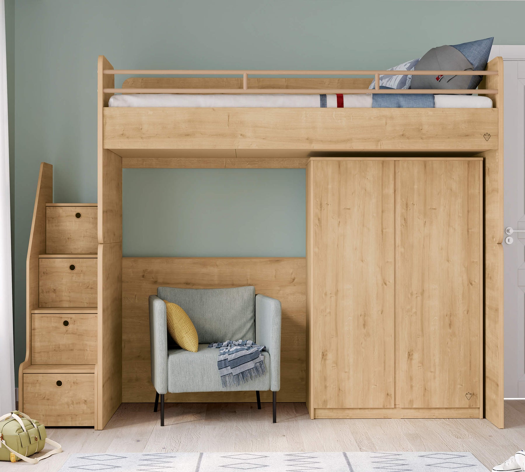 Alt kasa kullanımı ile karyolanın yerden yükseltilmesi sağlanmış olup alt kısımdaki alanların ister bir berjer eklenerek dinlenme köşesi istenir ise de oyun alanı köşesi oluşturulmasına olanak sağlayabilirsiniz.