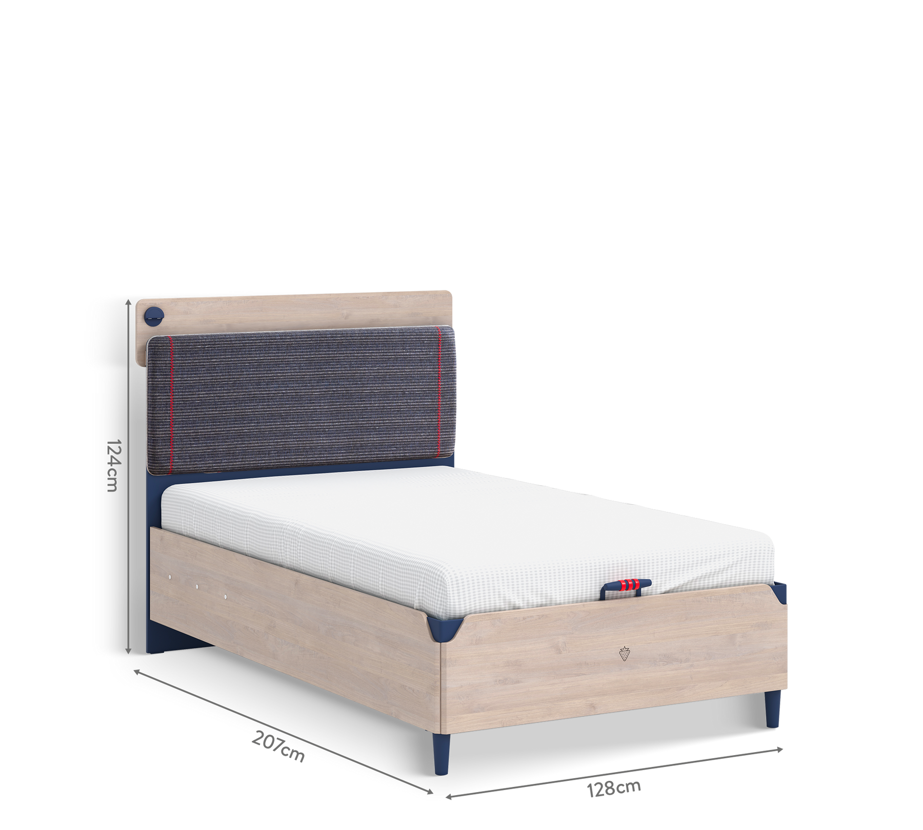 Kumaş kaplı yumuşak baş ucu tasarımı, yatakta geçirilen sürenin konforlu olmasına yardımcı olur. Gençlerin bir yatakta aradığı özellikler arasında ilk sıralara sahip olan USB girişi de Trio Line Bazalı Karyola 100x200 ve 120x200 cm'de yer alır. Geniş bazasıyla kullanılmayan eşyaları pratik bir şekilde muhafaza eden ürün, kullanışlı mobilyalardan biridir. Yanında bulunan seyyar kumaş cep ise tablet, kitap, telefon, defter için elinin altında özgür bir alan oluşturur.
