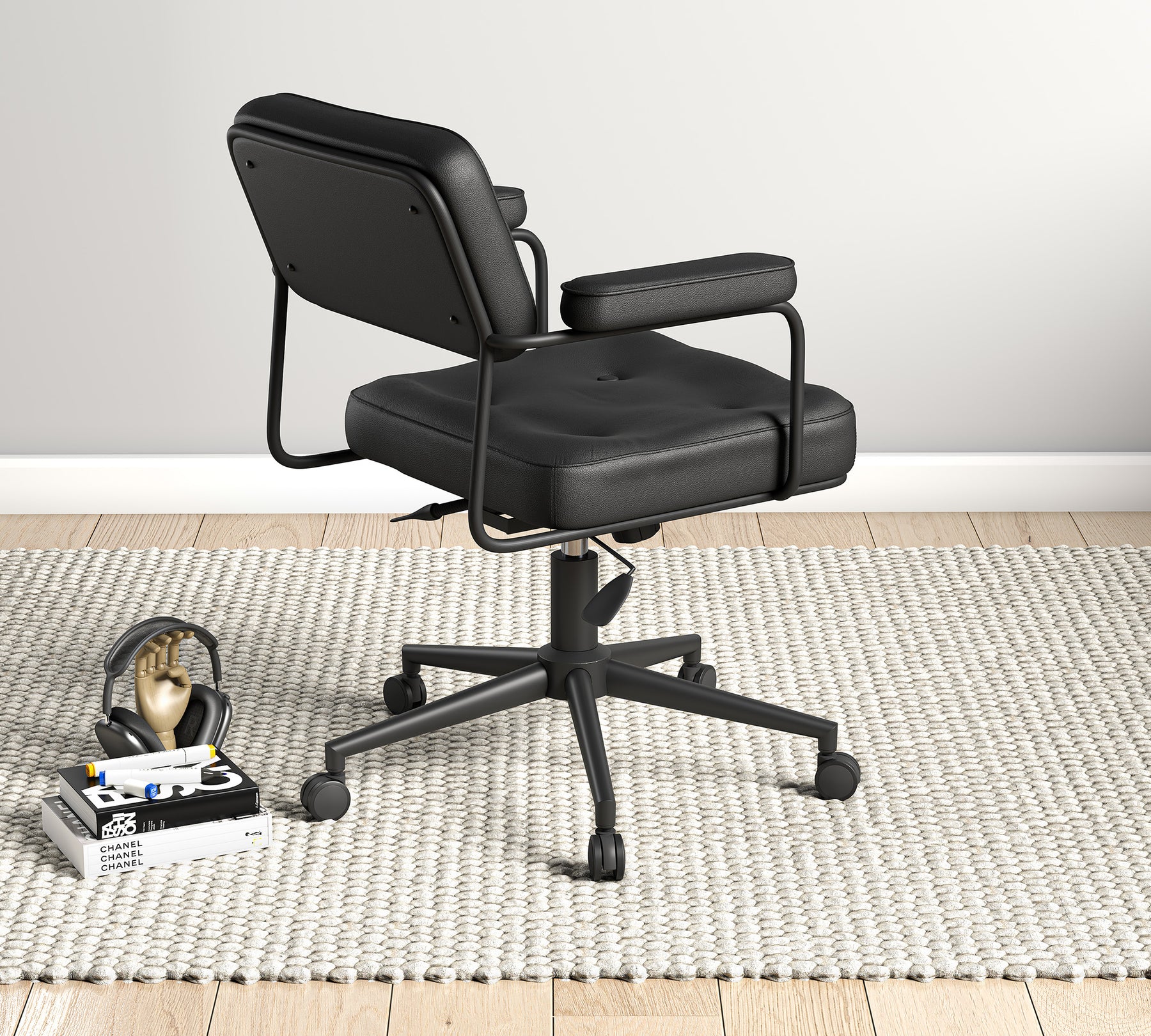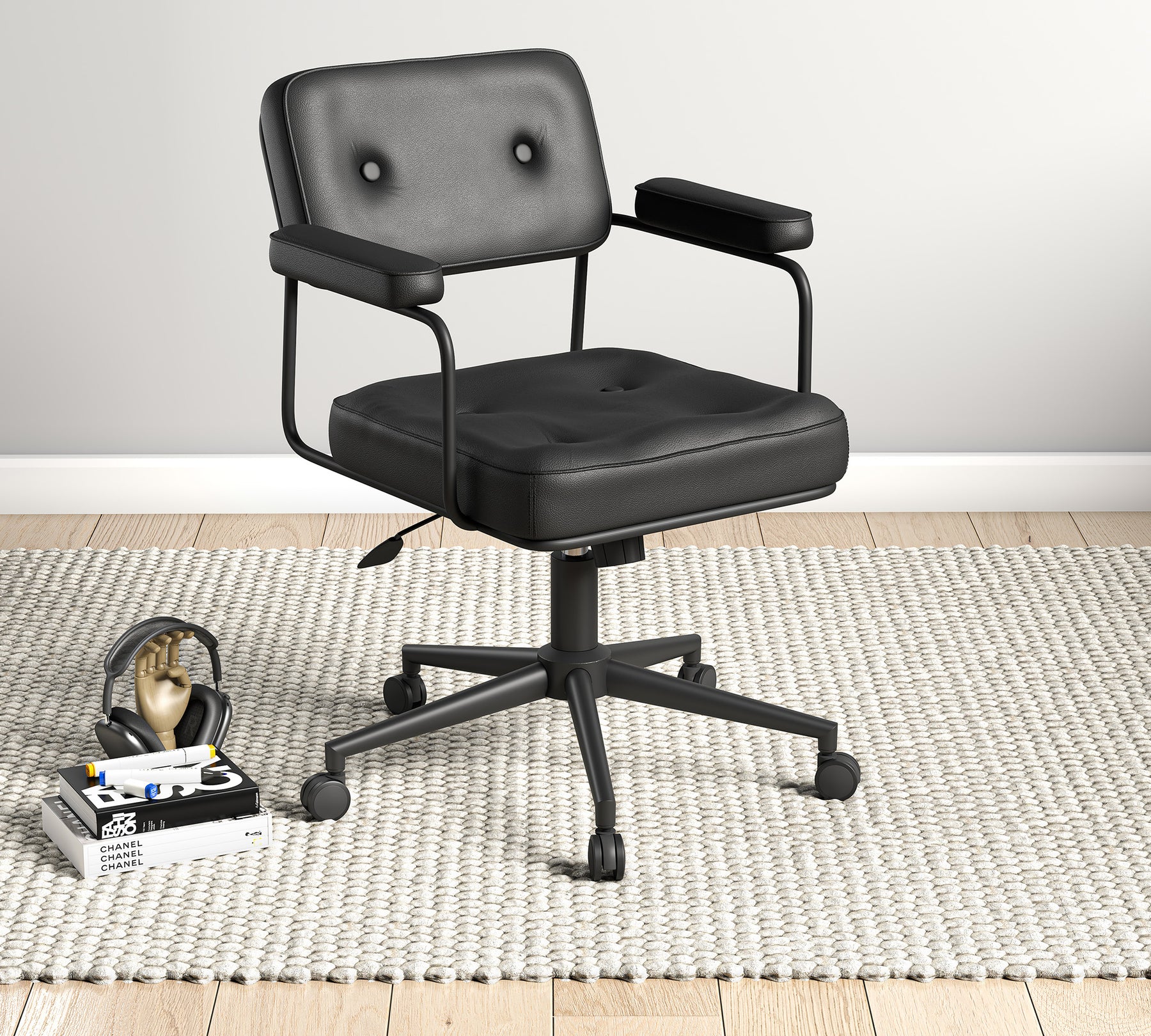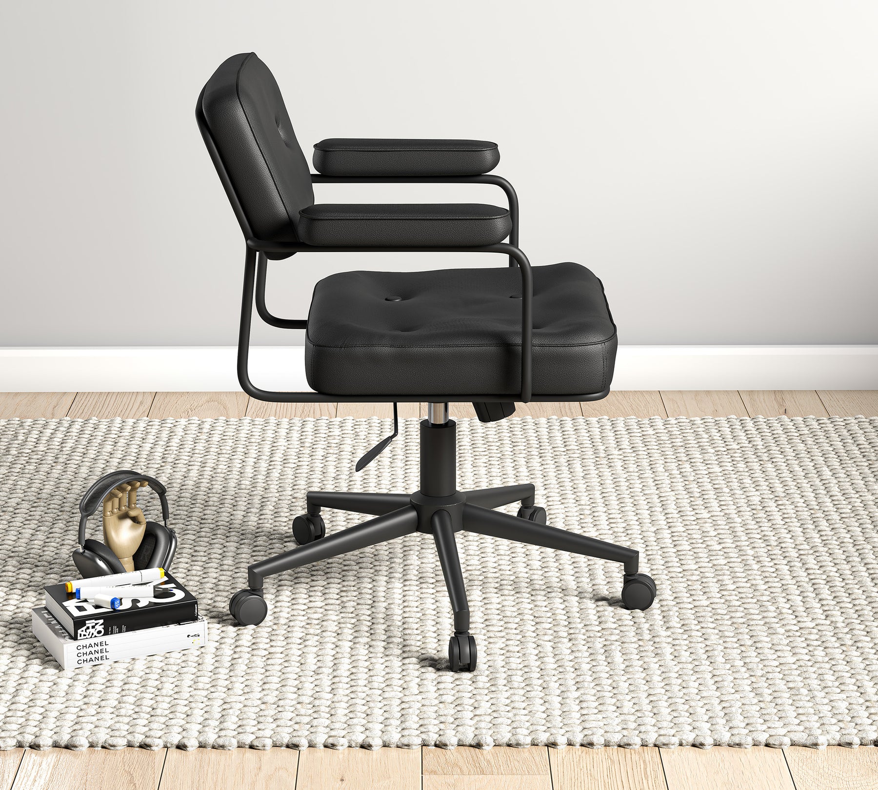Modern çizgisi ve güçlü duruşuyla öne çıkan Vibe Sandalye, çalışma alanlarına zamansız bir şıklık katıyor. Siyahın sofistike etkisini metal detaylarla buluşturan tasarımı, genç odalarında dinamik ve bütünsel bir atmosfer oluştururken konforlu yapısıyla uzun süreli kullanımlarda rahat bir deneyim sunuyor. Kolçaklı formu ve ergonomik oturum yapısı sayesinde hem estetik hem de fonksiyonel bir kullanım sağlıyor.